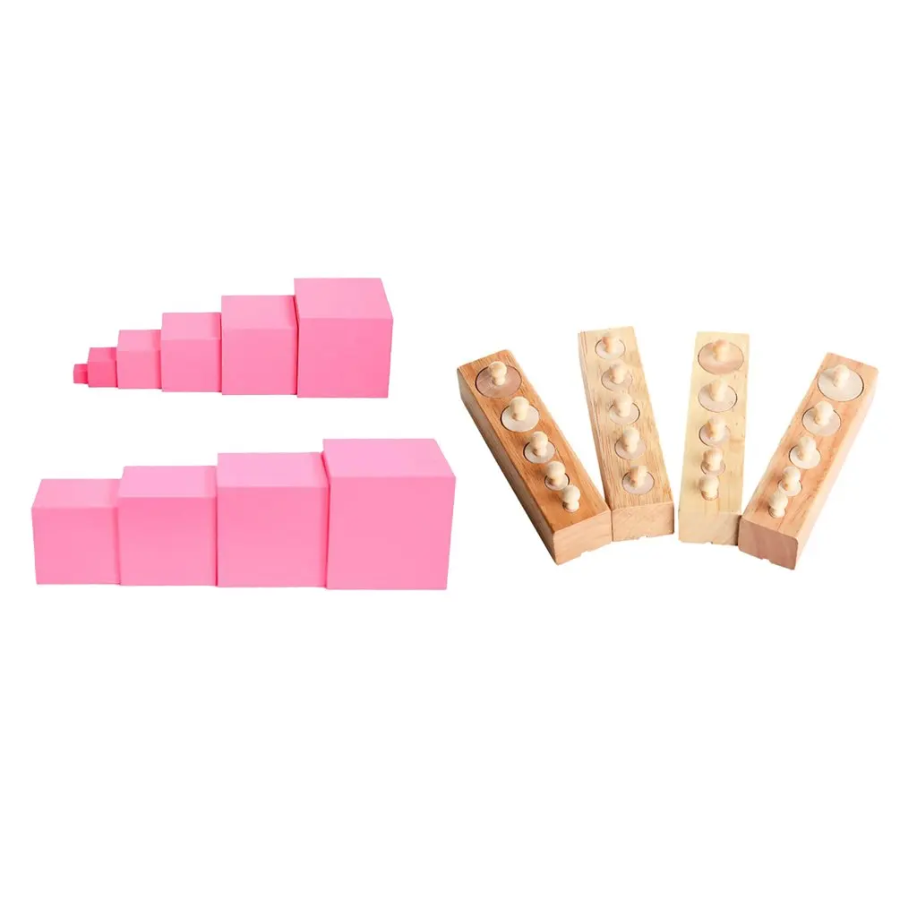 BEST Montessori Family Toy Pink Tower and Cylinder Block Sensory Material Educational Toys for Kids