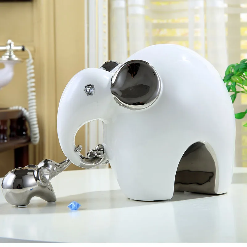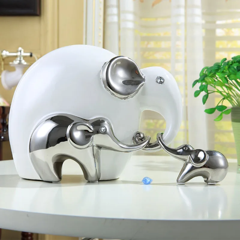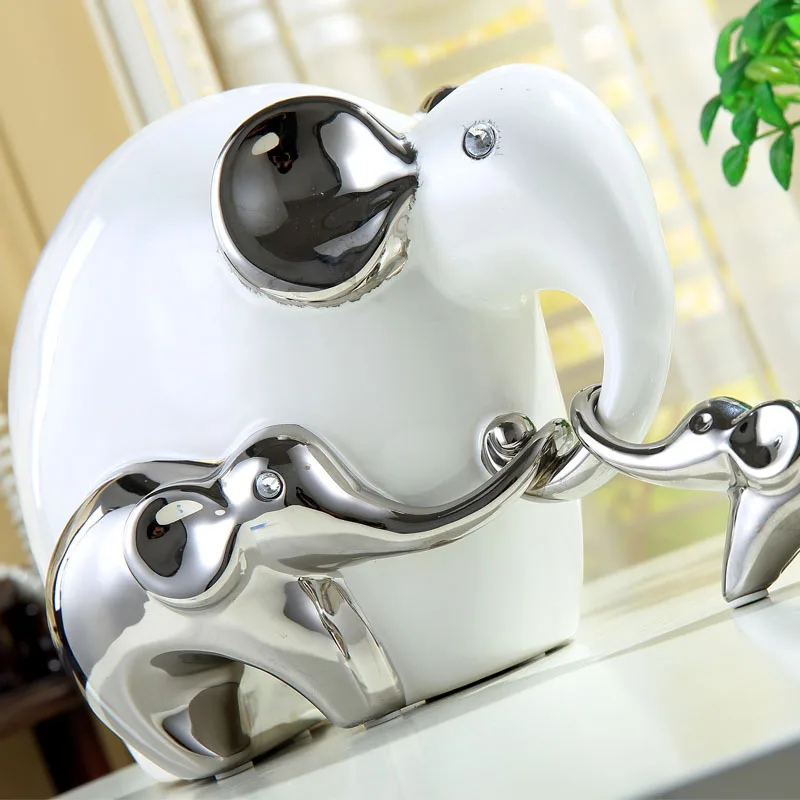 Porcelain Elephant Sculpture Ceramic Abstract Animal Family Love Decor Gift Craft Adornment Accesso