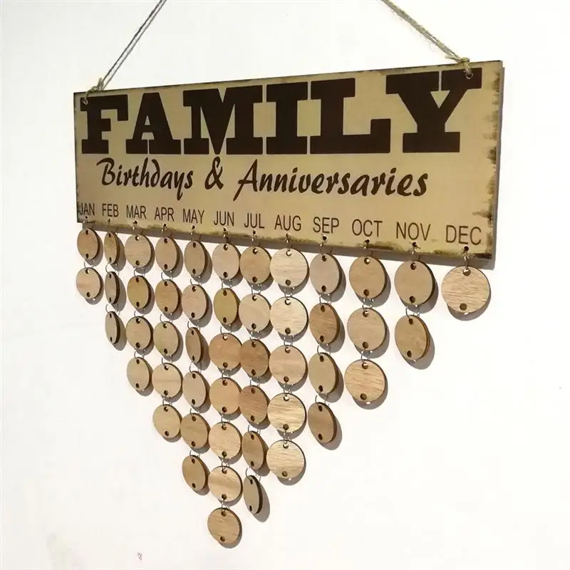 FAMILY Birthdays and Anniversaries Board Hanging DIY Calendar Wooden Plaque Birthday Reminder Home