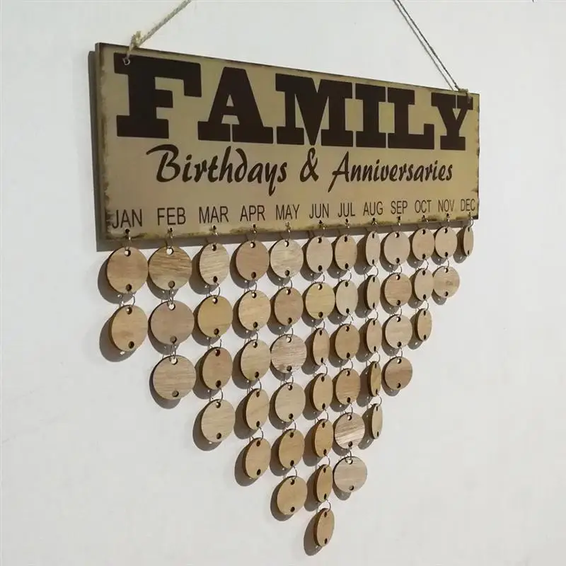BEST QUALITY FAMILY Birthdays and Anniversaries Board Hanging DIY Calendar Wooden Plaque Birthday Reminder Home