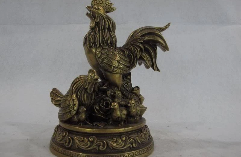 HIGH QUALITY Chinese Brass Copper rooster cock chicken family Gold ingot Feng shui figurine
