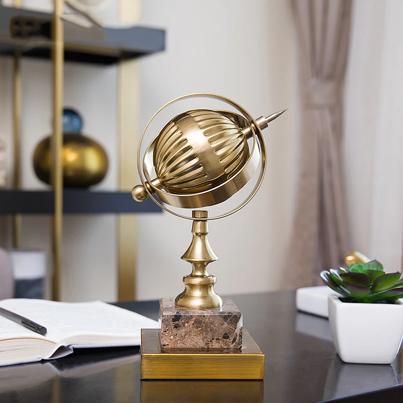 HIGH QUALITY Gold Metal Globe Furnishing Household Decor Display Family Animal Living Room Marble Ornament Chris